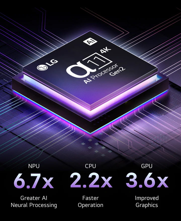 alpha 11 AI Processor Gen2 upscales visuals to 4K quality with stunning color and brightness. AI engines perceive objects with pixel-level precision to enhance picture quality for the best viewing experience possible.